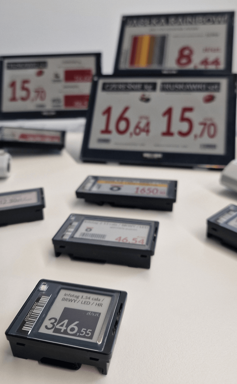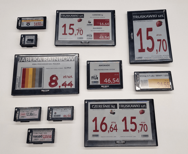 atrakcyjne cenówki elektroniczne - graficzne, trójkolorowe/czterokolorowe, wysoki kontrast wyświetlaczy umożliwia oglądanie obrazu z różnych odległości i kątów.