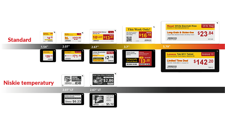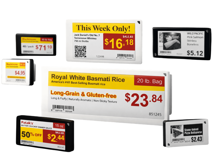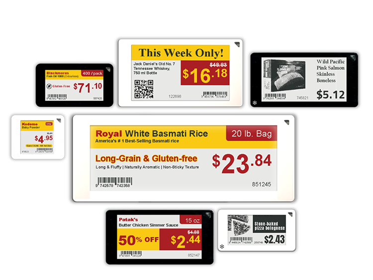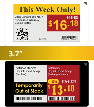 atrakcyjne cenówki elektroniczne - graficzne, czterokolorowe, wysoki kontrast wyświetlaczy umożliwia oglądanie obrazu z różnych odległości i kątów